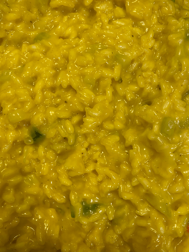- Ajouter enfin le petit pot de bouillon et safran qui donnera une couleur jaune à votre risotto.